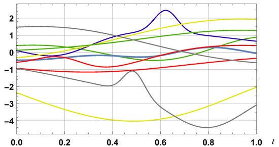 The coefficient functions are such that for and a comparison of (41) with (27) shows that a spline approximation converges to a dual Taylor approximation when and converge to zero. The variation in is illustrated in Figure 5.