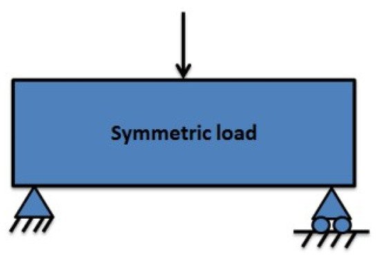 Schematics of three-point bending of a simply supported concrete beam.
