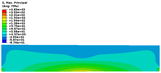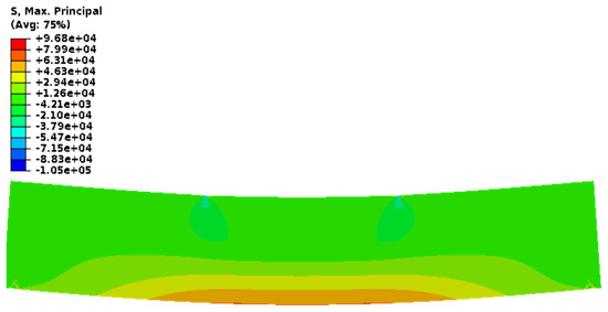 Maximum principal stresses for four-point bending of a simply supported concrete beam.