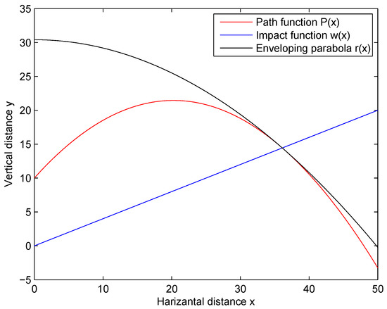Figure 1 shows the intersection of the path function, the enveloping parabola and the linear impact function for this application when method is applied.
