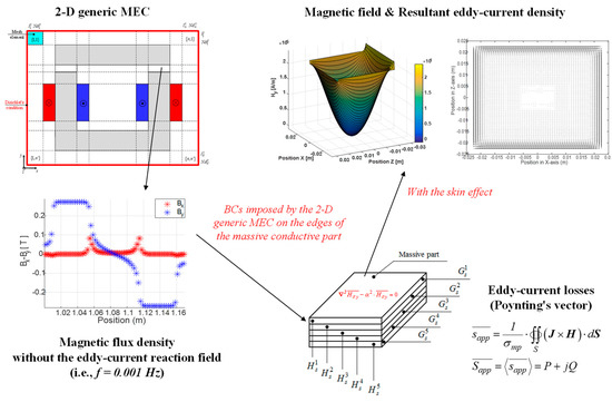 - The massive conductive parts are excited by the magnetostatic magnetic field from the 2-D generic MEC which is assumed normal to the xz-plane;