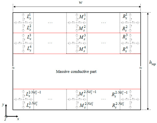 It is interesting to note that the 2-D analytical model, for calculating the magnetic field distribution with the skin effect as well as the resultant eddy-current density, will be applied across different layers in the y-axis of massive conductive parts (viz., the mesh elements and in Figure 3a). These different layers depend on the discretization of BD blocks in massive conductive parts.