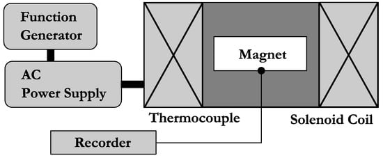 The major difficulty of measuring PM losses in electrical machines is to separate them from the total losses. Indeed, the measurement of the open- or short-circuit core loss generates the total losses in the machine [152]. By using the thermometric method, it is possible to measure PM eddy-current losses. Figure 2 shows a manipulation realized in [153]. The sintered PM was inserted into a solenoid coil, and its temperature was measured by thermocouples. The system was supplied by an alternating magnetic field, and the eddy-current losses were calculated following: