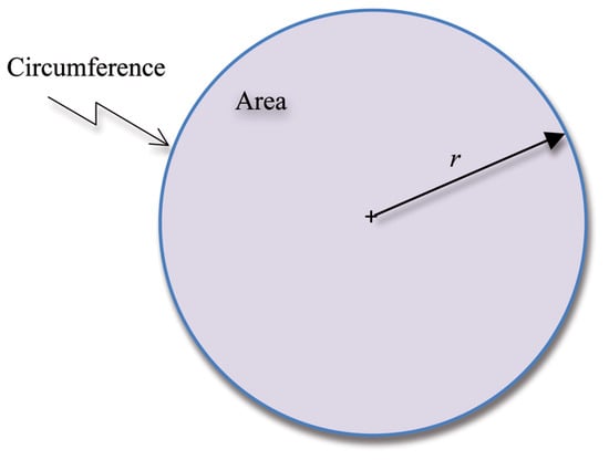 A Euclidean’s circle with a radius r, a circumference C, and an area A.