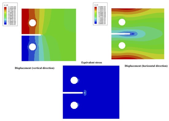 where r and are the polar coordinates of a point with respect to the crack tip, and is the stress intensity factor, see Figure 3. Taking the polar coordinate from the origin, Equation (15) can then be simplified for our purpose to only an element in the vertical direction: