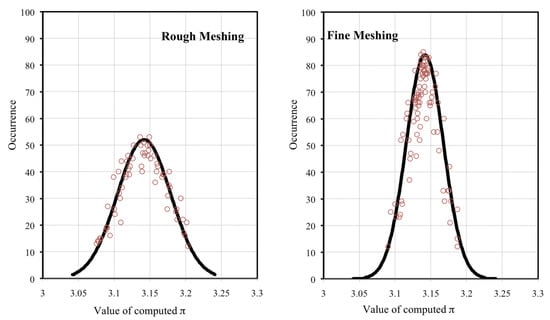 Our observations of the answers clarify that, based on the rough meshing, , while, based on the fine meshing, . The difference of the result of rough meshing and fine meshing is only on the standard deviation. The fine meshing gives the smaller standard deviation, while the mean of both distributions remains the same. Thus, as the sample size increases, the standard deviation of the means decreases. This implies that actually engineering data only needs no more than three significant numbers of . Experimental data show that an even lower digit number is actually needed. The fine meshing data shows that it requires three significant numbers, while the rough one requires only two significant numbers. This once again reiterated the fact that the truncation of decimal of to 11 is good enough to estimate the circumference of any circle that fits inside the earth with an error of less than one millimeter, while modern engineering relies on extensive empirical equations based on experimental data that inherit large errors. The fact that many researchers and enthusiasts produce billions or even trillions of significant numbers is clearly beyond the engineering needs.