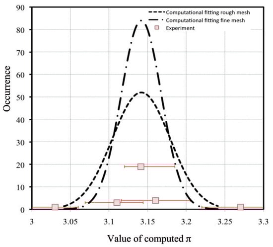 The research shows that can be obtained empirically using a fracture mechanics concept too. This fact is not surprising as it can also be obtained by other data, including economics, and even societal human behaviors [,]. Our method is in a way similar to that of Buffon’s Needle []. It is one of the classic problems in the field of geometrical probability for finding by the experiment. It involves dropping a needle on a lined sheet of paper and determining the probability of the needle crossing one of the lines on the page. The problem also can be solved using integral geometry. The remarkable result is that the probability is directly related to the value of and can be used to design a Monte Carlo method for approximating the number of .