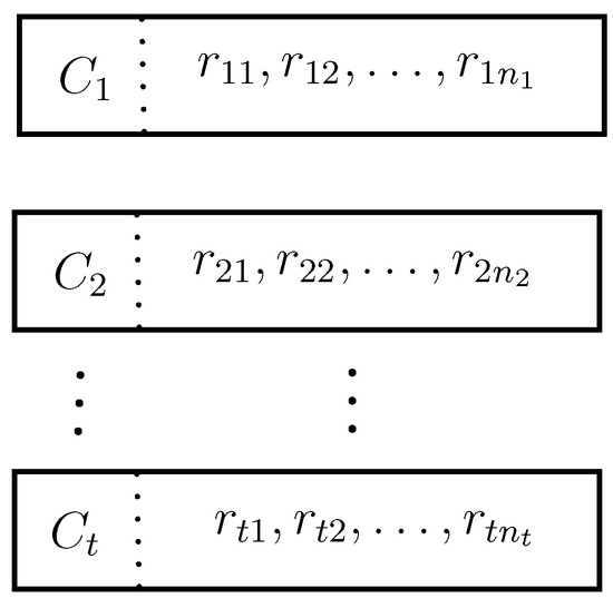 For a CPFG, suppose that we have a collection of attributes (vertices) partitioned into t distinct categories such that , where are the attributes in the category and suppose is a prioritization relationship among these categories. In the category , the attributes have a higher priority than those in if . Then the universal set of attributes is and the total number of attributes is . The prioritized hierarchy structure of Z is shown in Figure 11. We put forward an approach to handle the CPFG based MADM problems according to the prioritized complex Pythagorean fuzzy aggregation operators well-organized with the degrees of attributes.