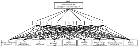 which have been given by area managers. The committee is distressed that the projects (alternatives) are prioritized from maximum to minimum potential input to the firm’s strategic goal of achieving ambitious advantage in the industry. To determine the possible input of each project, a set of seven factors (attributes) are considered: Under the complex Pythagorean fuzzy circumstances, an expert is invited to evaluate these alternatives with complex Pythagorean fuzzy elements. Therefore, the complex Pythagorean fuzzy decision matrix is given in Table 1. The hierarchical structure of the given decision making problem is depicted in Figure 12.