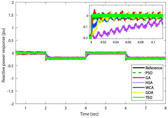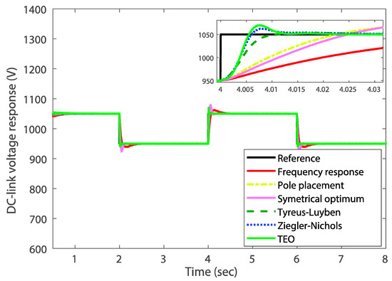 In recent years, an enormous variety of metaheuristics optimization algorithms has been applied to solve complex and hard problems in science and engineering fields. Bekakra and Attous [10] presented the Particle Swarm Optimization (PSO) algorithm to obtain the optimal gains of PI controllers for the indirect control of the active and reactive powers’ loops of a DFIG. Integral Absolute Error (IAE), Integral Time-weighted Absolute Error (ITAE) and Integral Square Error (ISE) performance criteria were selected as objective functions. Vieira et al. [11] applied the Genetic Algorithm (GA) to obtain the gains of the PI controllers at the RSC, where the active and reactive powers loops were directly controlled. In addition, an indirect power control strategy was achieved using GA-tuned integral sliding mode controllers, where the GA was used to tune the parameters of the direct and quadrature rotor current controllers [12]. Moreover, Assareh et al. [13] proposed a hybrid GA along with a gravitational search algorithm to attain the optimal gains of the PI controller for the torque regulation of a DFIG-based WT system. In all of these studies, the optimization algorithms are applied to obtain only the PI controllers’ gains of the active and reactive powers at the RSC without discussion about the DC-link voltage regulation loop at the GSC and their effect on the overall control system.