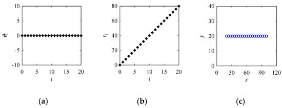 Settings for a horizontal straight line using the point cloud creation algorithm (PCA). (a) Input1: θi; (b) Input2: ri; (c) Output: Point cloud.
