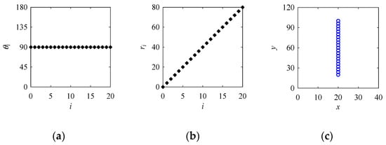 Settings for a vertical straight line using the PCA. (a) Input1: θi; (b) Input2: ri; (c) Output: Point cloud.