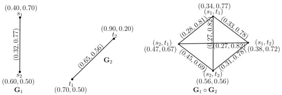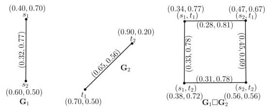 Consider PDFGs and as in Example 1. Then, the Cartesian product is displayed in Figure 3.