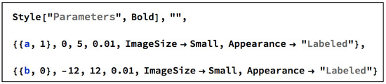 In order to create a consistent tool that considers all the mathematical possibilities for which the economic model makes sense, several situations concerning the values of the parameters a and b should be implemented. Given the function (3), only non-negative values for the parameter a are considered in the code (the range of values that run through the slider, see Figure 4).