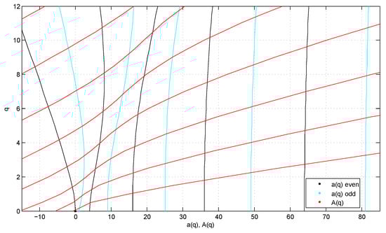Example 5. Mathieu’s equation appears related to wave equations in elliptic cylinders [19]. For an arbitrary parameter q, the problem is to find the values of λ for which non-trivial solutions ofexist with prescribed boundary conditions. It can be shown that there exists a countably infinite set of eigenvalues