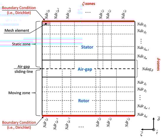 Comparing to [26], in our case, the stator tooth-pitch will be constituted by five radial zones, and four radial zones for the rotor pole pitch. For the tangential zones, the rotor pole pitch is consists of three zones, while the stator pitch consists of five zones. The discretization number in each zones is given by Table 3.