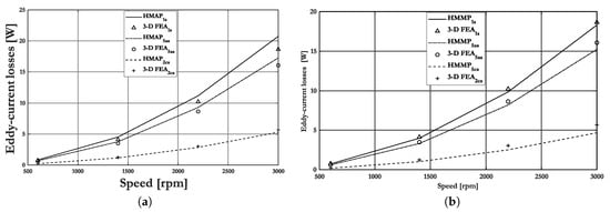 Eddy-current losses comparison with 3-D FEA: (a) all paths, and (b) middle path of PMs.