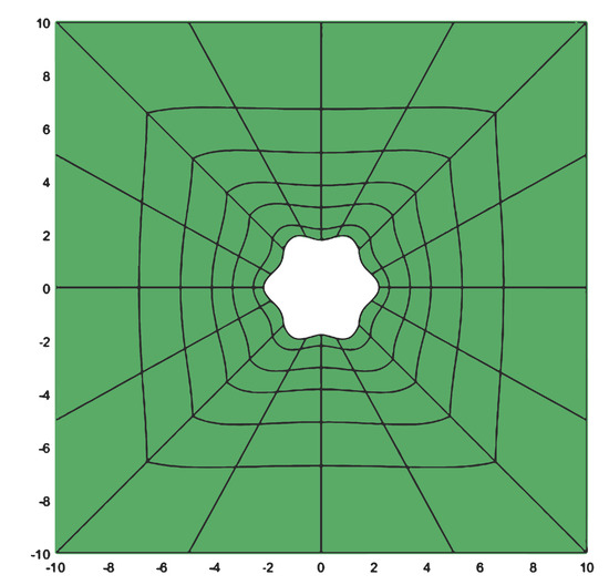- Vázquez, R. A new design for the implementation of isogeometric analysis in Octave and Matlab: GeoPDEs 3.0. Comput. Math. Appl. 2008, 72, 523–554. [Google Scholar] [CrossRef]