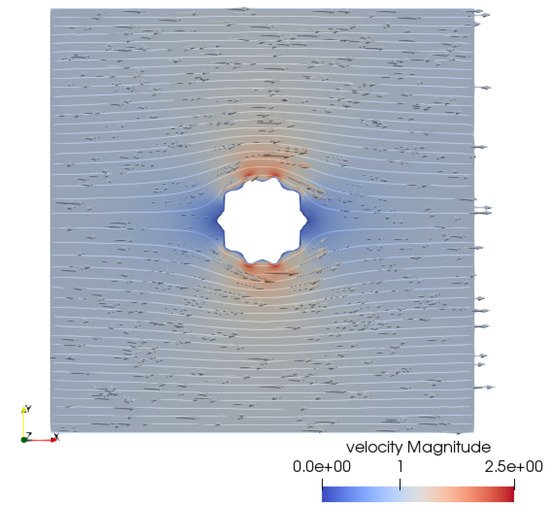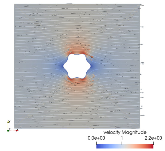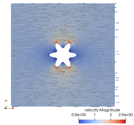 Case 6: the velocity representation with stream lines.
