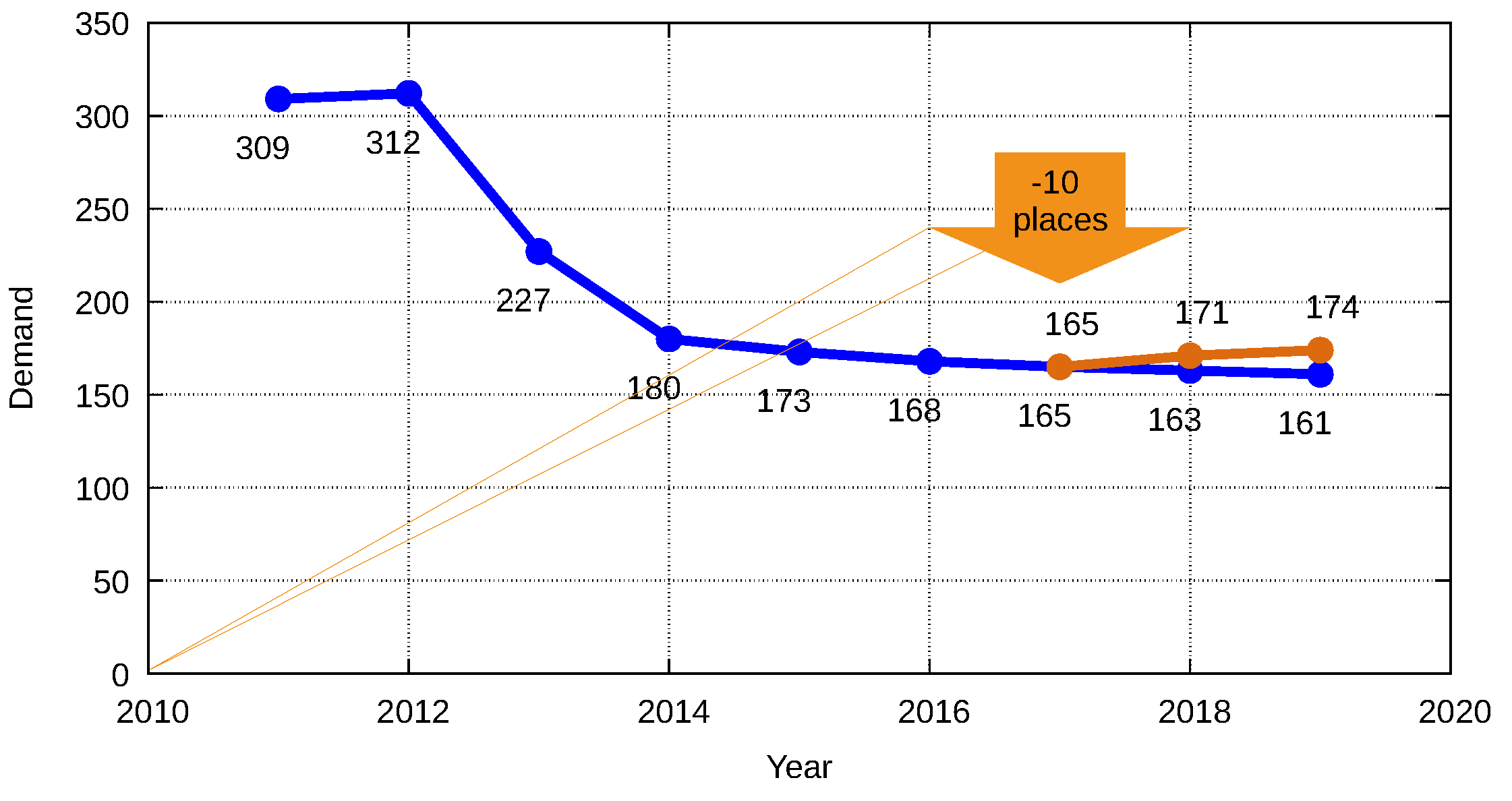End of the effect according to the modelSeats supply in the year of admission1st demand choice/ in the year of admission