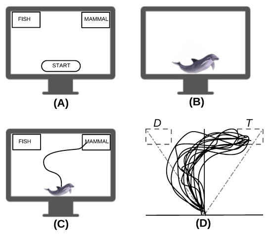 - Freeman, J.B.; Ambady, N. Software for studying real-time mental processing using a computer mouse-tracking method. Behav. Res. Methods 2010, 42, 226–241. [Google Scholar] [CrossRef] [PubMed]