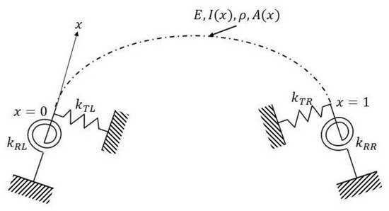 The boundary conditions for , in the presence of constraints with the translational spring constants and the rotational spring constants (as shown on Figure 3), are given: