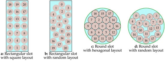 The big advantage of this model is the possibility of solving any wire layout for any slot shape, some examples are presented in Figure 2. This flexibility makes it possible to test a large number of random cases in order to detect the worst and best cases in terms of thermal heating. This gives the designer a possibility of decision for the design choices of these electric winding.