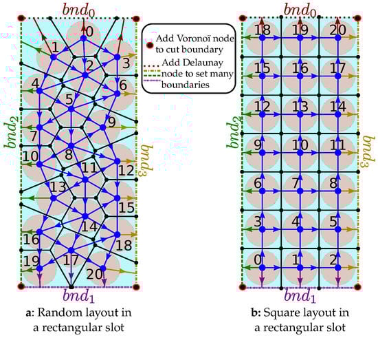 Several boundary conditions for a rectangular slot with a random layout (a) and a square layout (b).