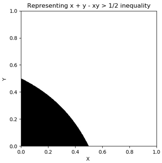 The black region that is bounded by the hyperbola in Figure 9 indicates the condition in (3) being unsatisfied. The area of the black region is: