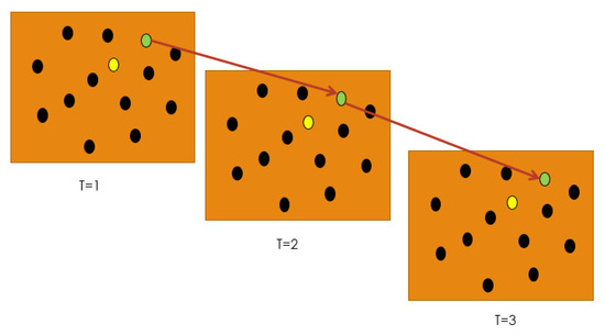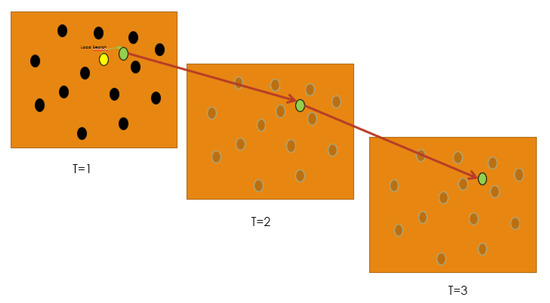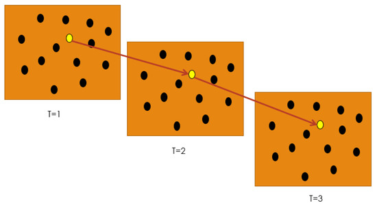 This method performs random sampling in the current search space, then uses the sample with the best fitness in the current environment as a robust solution over time, using the solution found in the following times (Figure 1).