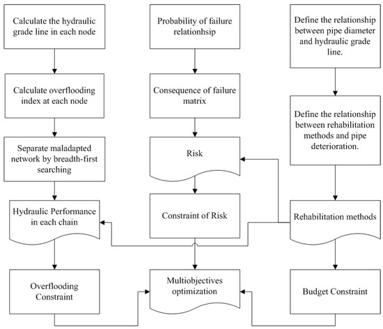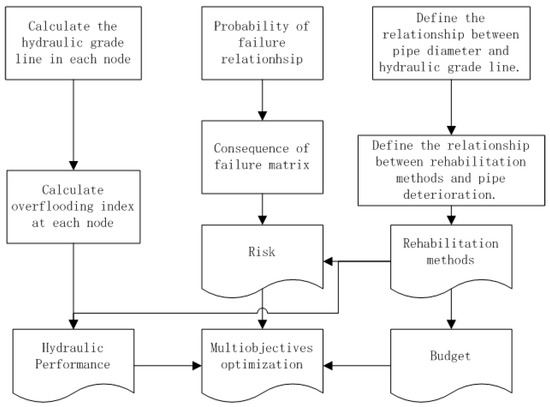 This paper is organized as follows: first, the structure of our new algorithms is introduced; subsequently, we specify the new algorithms in a computational model, Hydraulics and Risk Combined Model (HRCM). Then, two scenarios are studied to verify those new methods. Finally, we provide a combined methodology to replace/rehabilitate pipes in the drainage system for urban flooding control and pipe breaking precaution.