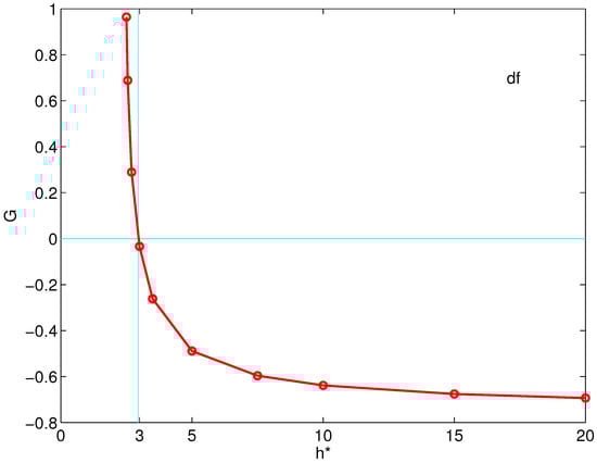 On the other hand, the sensitivity of Γ ( · ) (and consequently of Ξ ( · , · , · ) ) with respect to h * is of paramount interest. In fact, the numerical determination of the roots of Γ ( · ) = 0 is a well-conditioned problem if and only if | d Γ / d h * | at the root is bigger than the machine rounding unit (a simple proof of this statement is possible under suitable regularity conditions on Γ ( · ) ). Therefore, it is relevant to verify the sensitivity of Γ ( · ) at each zero. Of course, since Γ ( · ) is not given explicitly, we cannot evaluate its sensitivity directly. Hence, monitoring of the sensitivity will require an increase in the computational cost. A simple procedure is to apply the secant method as the root-finder because in this case, we compute a finite difference approximation for the first derivative of Γ ( · ) in each iteration. Some caution has to be used because finite difference approximations of derivatives are prone to rounding errors that, for really small increments, could dominate the approximations.