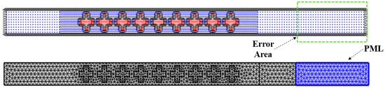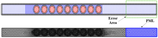 Node distribution with error region and element distribution with PML region for the phononic crystal with semi-infinite periodic structure in the y-direction.