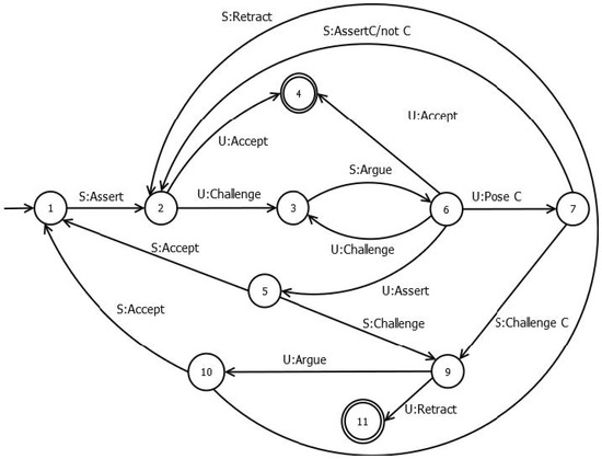 Multiple elements must be considered for the dialogue game, such as the players and their respective roles, objectives, limitations, etc. Like any game, a set of rules must be established that defines which actions are acceptable or not during the dialogue. Also, it is necessary to define a system to determine the movements that each participant is allowed to perform at the different stages of the dialogue game.