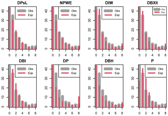 From Figure 5, we could infer that the DPsL distribution yielded a better fit among other fitted distributions. To complete this, Table 12 contains some descriptive measures of the fitted DPsL distribution. Hence, here also, it is evident that the fitted DPsL distribution was over-dispersed, moderately right skewed and leptokurtic.