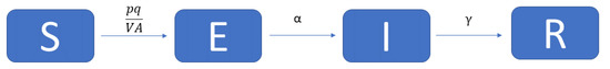 To overcome the limitations of the G–N model, we can look to using the well-known SEIR model that has been a mainstay for decades in studying infectious disease dynamics. The SIR model, also known as the Susceptible-Infected-Removed model, is the basis for the SEIR model. In the SIR model, there are three linked categories, the number of susceptible, S, the number of infected, I, and the number of people removed through death or immunity, R. The interactions between these categories are described by the differential equations following [13,14]
