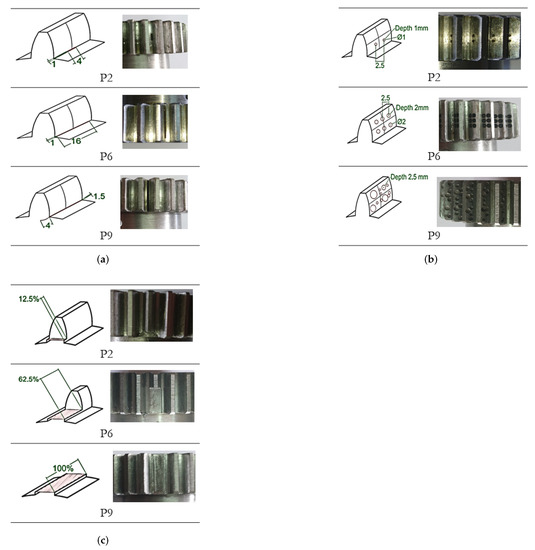 Details of the simulated faults for the three case studies. (a) Schemes and photography of crack levels. (b) Schemes and photography of pitting levels. (c) Schemes and photography of broken tooth levels.