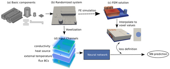 Machine learning (ML) techniques are possible candidates to increase the computational speed. The application of ML techniques to the design of electronic systems focuses mainly on two aspects [2]. The first aims at reducing the number of required design iterations [3,4]. For example, a genetic algorithms required around 1000–10,000 FEM simulations to find the optimal placement of a chip in a system [5], which takes a considerable amount of computation time. Alternatively, ML is used to accelerate the evaluation of individual designs, i.e., replace the time consuming simulations by neural networks [6,7,8,9].