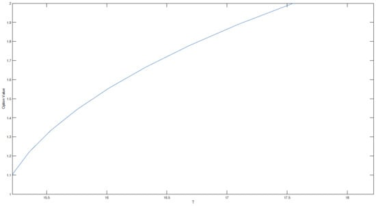 Figure 1 indicates that the equity warrant value is an increasing function with respect to the time T when other parameters remain unchanged. This is because the longer the time, the more likely it is to be executed and the higher the price of the equity warrant. This law is common sense in the financial markets.