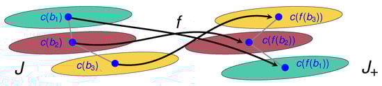 Next, we discuss our assumptions on a valid registration mapping that establishes cell-to-cell correspondences between two frames. Let J, denote two successive images, with cell sets B and , respectively. As above, we let , and . Our goal is to track each cell from J to . For each cell , there exist three possible evolutions between J and :