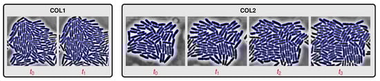 - Balomenos, A.D.; Tsakanikas, P.; Manolakos, E.S. Tracking single-cells in overcrowded bacterial colonies. In Proceedings of the Annual International Conference of the IEEE Engineering in Medicine and Biology Society (EMBC), Milano, Italy, 25–29 August 2015; IEEE: Piscataway, NJ, USA, 2015; pp. 6473–6476. [Google Scholar]