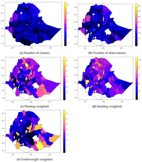 18. Sohnesen, T.P.; Ambel, A.A.; Fisker, P.; Andrews, C.; Khan, Q. Small area estimation of child undernutrition in Ethiopian woredas. PLoS ONE 2017, 12, e0175445. [Google Scholar] [CrossRef] [PubMed]