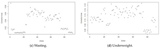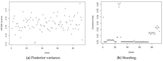 The predictive posterior variance of prevalence of undernutrition and correction bias due to benchmarking are given in Figure 8.
