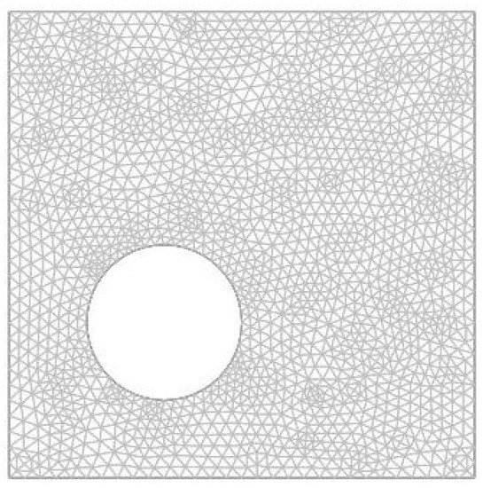 In addition, to select a proper grid size, in the present study, a particular grid sensitivity selecting procedure was performed for the square cavity along with various heated cylinders for Pr = 0.71, Ha = 100 and Ra = 105, considering assorted size of mesh. The manifest meshing is shown in Table 1 and Figure 4, where the average Nusselt number is calculated. It was found that further increments of Nuav have insignificant transform. Throughout the study, for 23,780 nodes and 3568 elements, the mesh configuration was chosen for accurate simulation to find the optimized, desired result in the present study.