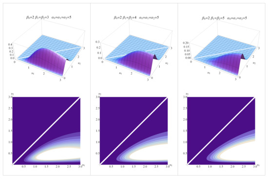- If Then the joint distribution of and is called a bivariate beta type I distribution. In Figure A1 this will be denoted alternatively as . The multivariate generalisation of this distribution is called the Dirichlet type I distribution (see [12,13]).