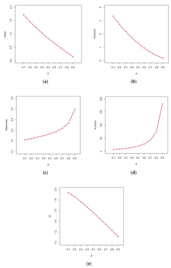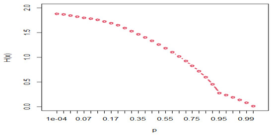 Figure 5 relates the to the values of parameter p. One may note that (X) is monotonically decreasing in p ∈ (0, 1) with its limit inclining to zero as p tends to 1.