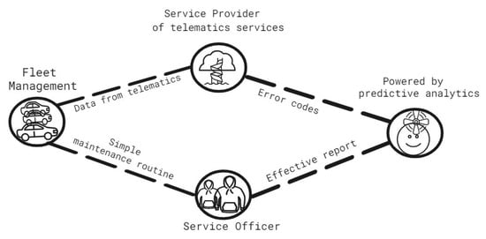 Figure 4 shows the predictive fleet maintenance, the fleet vehicle, the telematic service provider, and the predictive analytical engine to the service manager.