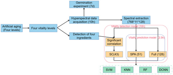 - Li, Y.; Sun, J.; Wu, X.; Chen, Q.; Lu, B.; Dai, C. Detection of viability of soybean seed based on fluorescence hyperspectra and CARS-SVM-AdaBoost model. J. Food Process. Preserv. 2019, 43, e14238. [Google Scholar] [CrossRef]