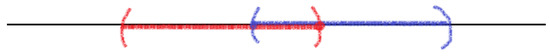 Since the endpoints of belong to , each of them must be either outside of or in a gap of . Since, by construction, contains an endpoint of , one of them is outside . The other one must belong to (and therefore to a gap of ), because otherwise, , contradicting the assumption in Equation (2).