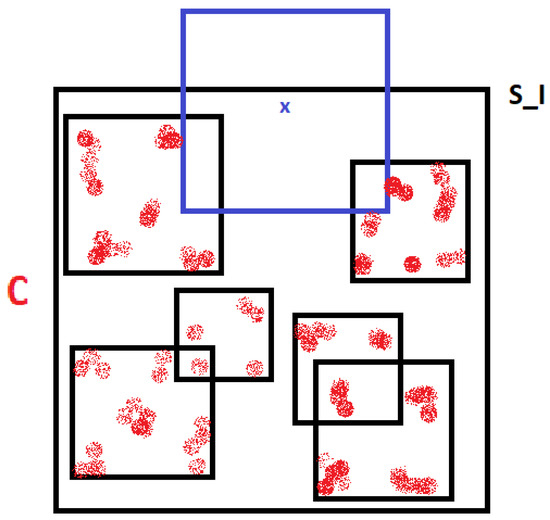 It remains to be shown that . Since , we have that is a ball with a radius of at least r, and since , we have . Hence, by the r denseness, there is a child of contained in . In particular, . □